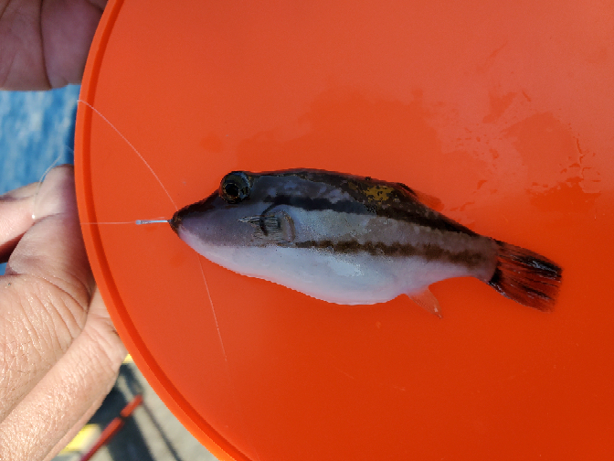 典型的な外道魚キタマクラも 大きな心でキャッチ リリース フグの仲間だけあり 毒もあり 歯は鋭く仕掛けを噛み切ります 釣太郎ブログ